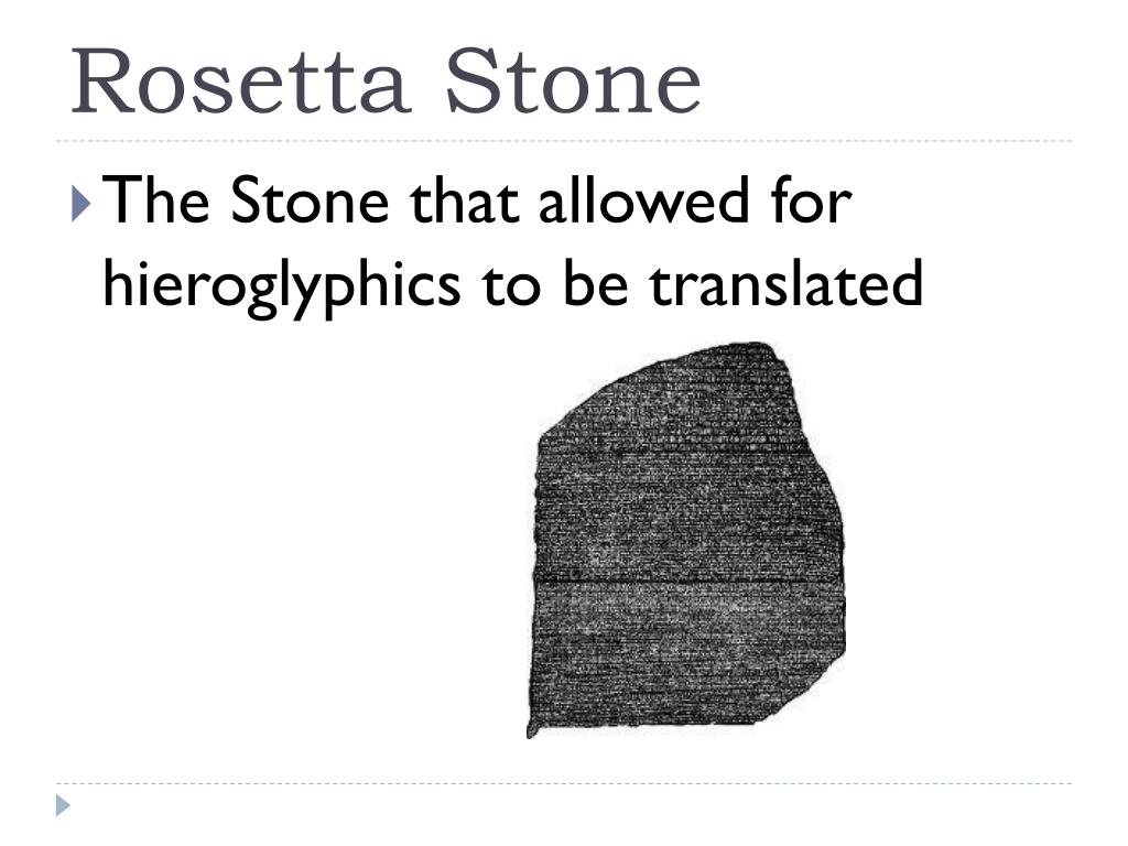 Rosetta Stone • The Stone that allowed for hieroglyphics to be translated