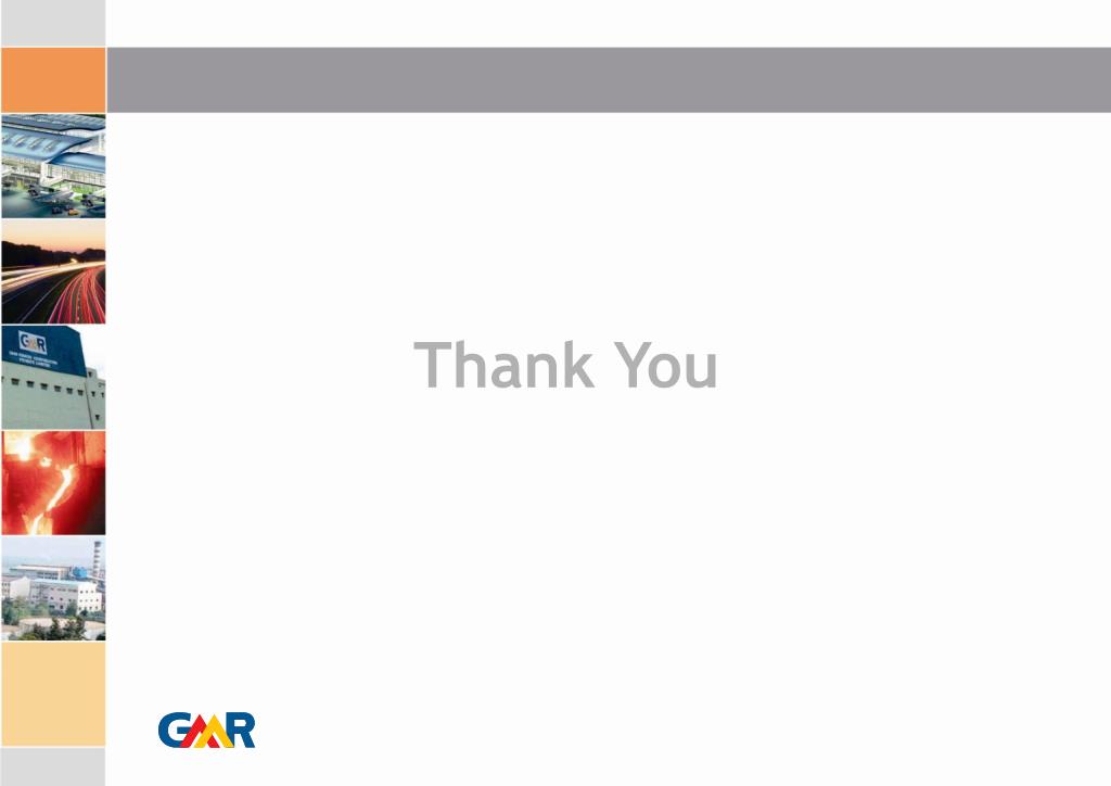 GMR has successfully implemented and operationlized Power Assets • Barge-mounted power plant • One of the largest operational Independent Power Producer (IPP) in Karnataka • ISO 14001, ISO 9001 and OHSAS 18001 certified • Evaluating the options for relocation Post PPA GMR Energy Limited • ISO 14001 and OHSAS 18001 compliant • Dr. M.S. Swaminathan Award for being an environment friendly project GMR Power Corporation Pvt. Ltd. • Company’s third Greenfield power project • PPA got extended from 15 to 23 years • Expansion plan for additional 700 MW capacity • Operating on diverted gas made available by GAIL as per the directive from Andhra Pradesh Power Coordination Committee Vemagiri Power Generation Ltd.