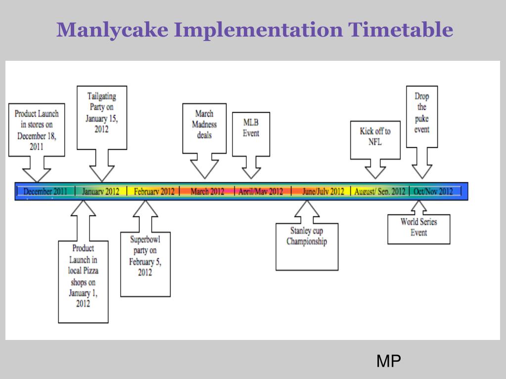 Pricing Strategy The Healthycake • $4 for one cupcake • Cost oriented approach • High quality ingredients are more expensive • It takes more time to make The "Manlycake" • $2.75 for one cupcake • Customary pricing of Emma Jean's cupcakes • Promotional price of $15 for a "6 pack" MP