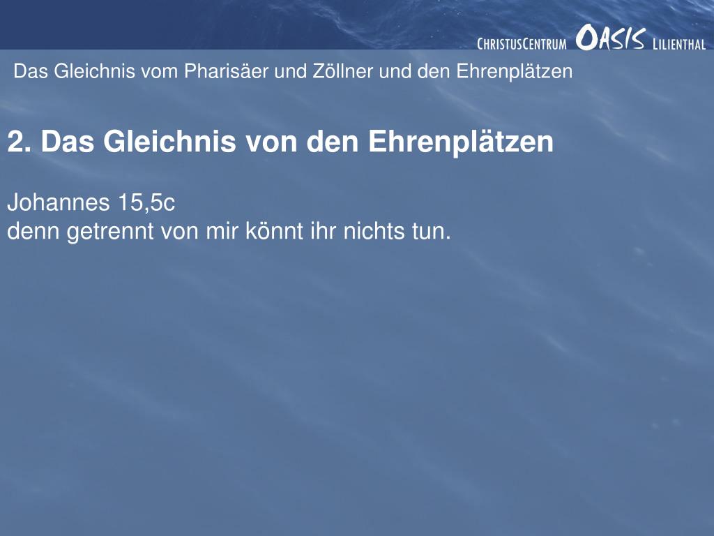 Das Gleichnis vom Pharisäer und Zöllner und den Ehrenplätzen 2. Das Gleichnis von den Ehrenplätzen Johannes 15,5c denn getrennt von mir könnt ihr nichts tun.