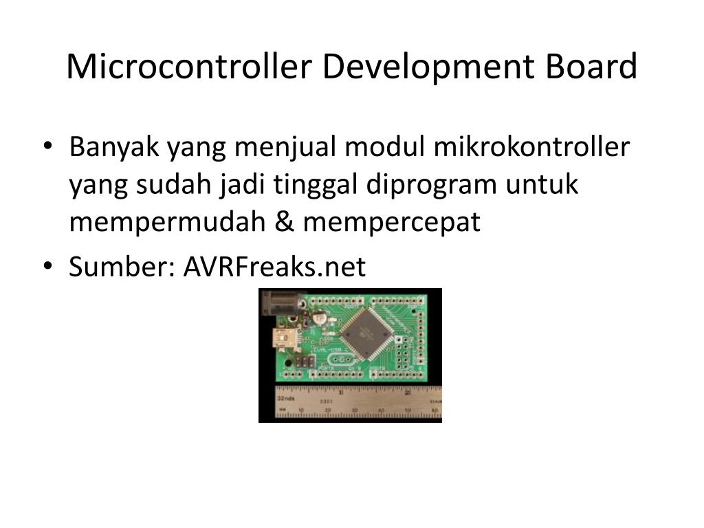Microcontroller Development Board • Banyak yang menjualmodulmikrokontroller yang sudahjaditinggaldiprogramuntukmempermudah & mempercepat • Sumber: AVRFreaks.net