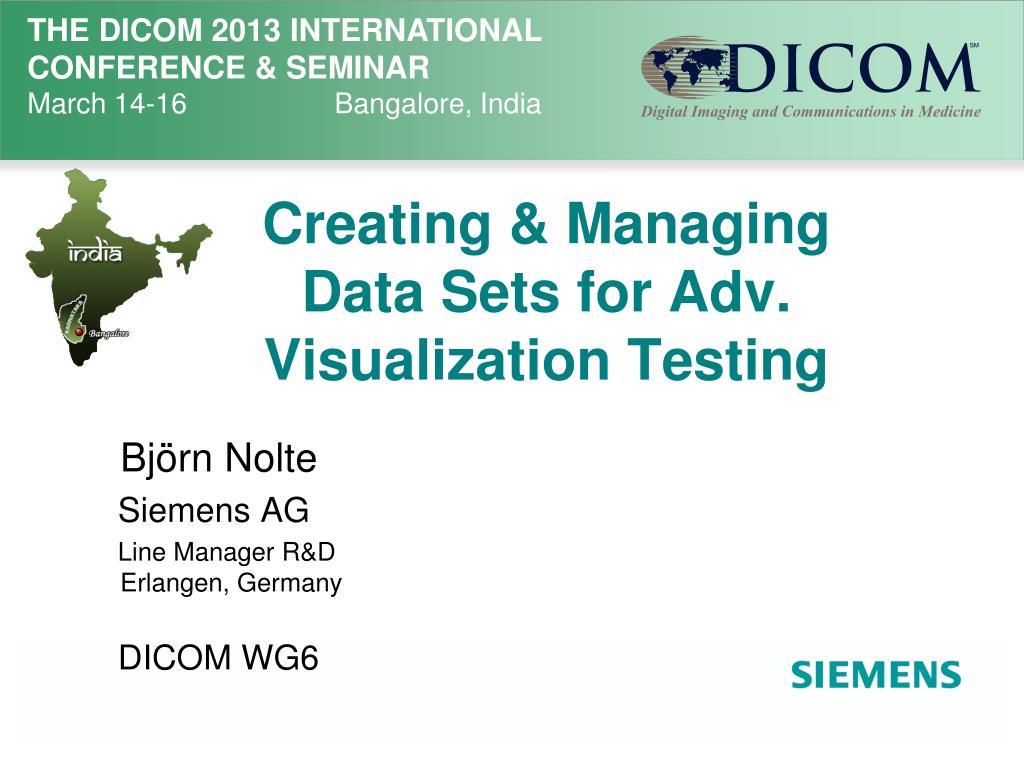 Creating & Managing Data Sets for Adv. Visualization Testing Björn Nolte Siemens AG Line Manager R&DErlangen, Germany DICOM WG6