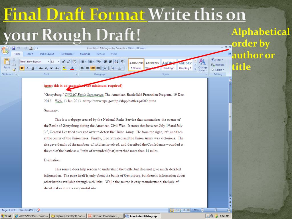 Final Draft Format Write this on your Rough Draft! Alphabetical order by author or title
