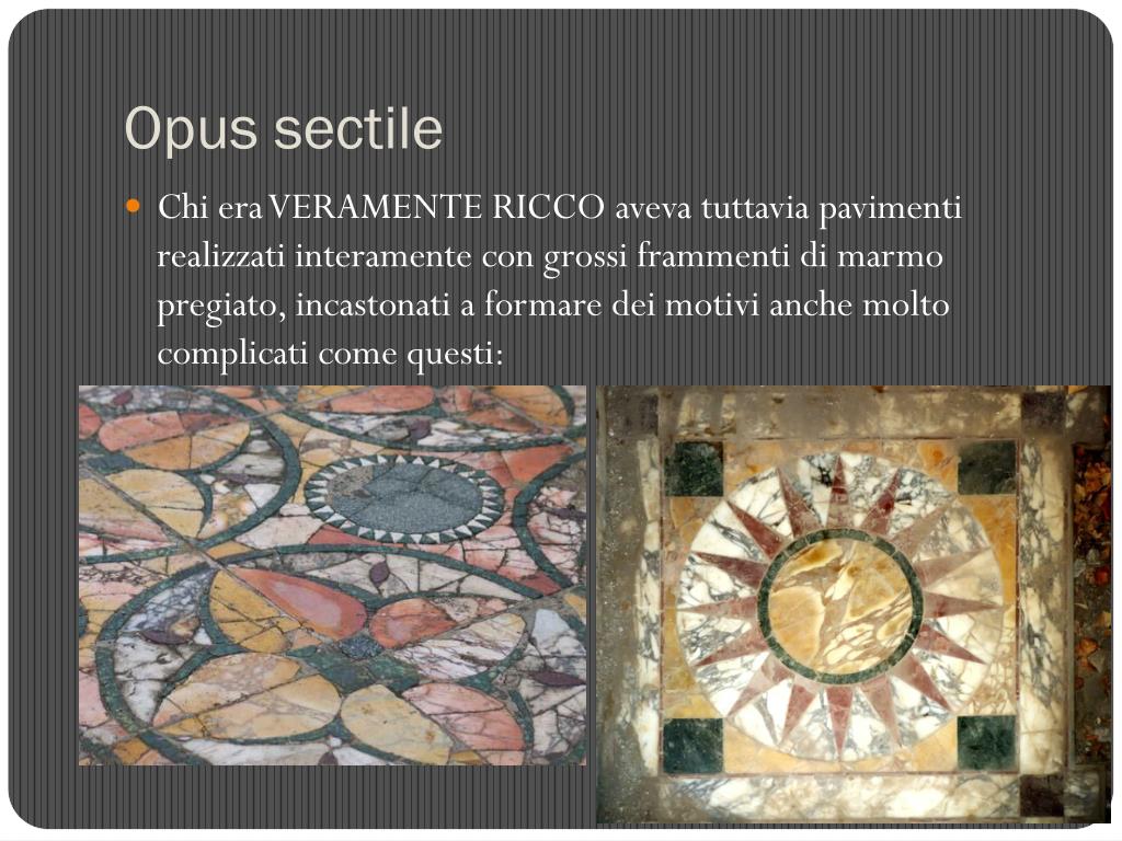 Opus sectile • Chi era VERAMENTE RICCO aveva tuttavia pavimenti realizzati interamente con grossi frammenti di marmo pregiato, incastonati a formare dei motivi anche molto complicati come questi: