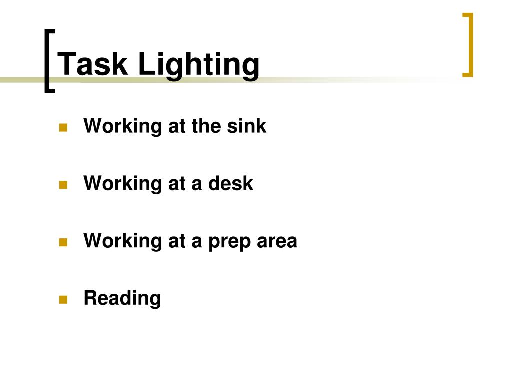 Task Lighting • Working at the sink • Working at a desk • Working at a prep area • Reading