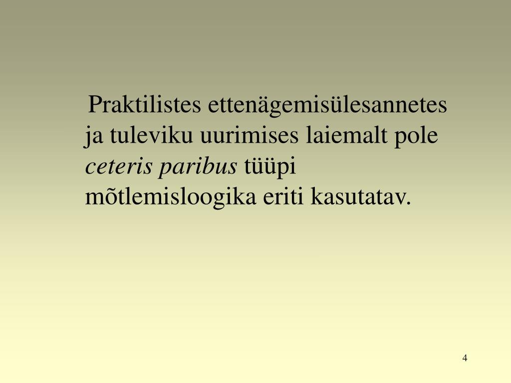 Praktilistes ettenägemisülesannetes ja tuleviku uurimises laiemalt pole ceteris paribus tüüpi mõtlemisloogika eriti kasutatav.