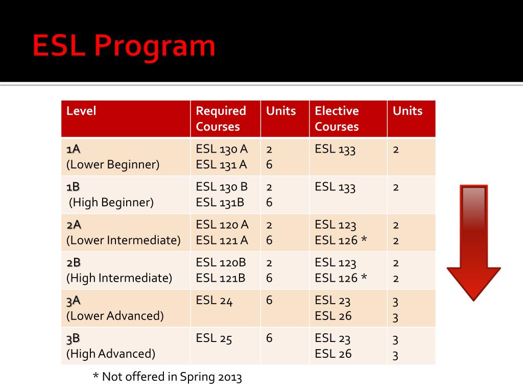 Important Dates for Spring 2013 term • January 21 – Holiday (Martin Luther King’s Birthday) • January 22- Full term classes begin • February 5 – Late Start classes begin (includes all ESL classes and PSCN 13) • February 10 – Add or Drop NGR deadline for full-term courses • February 21– Pass/ No Pass Deadline • March 25 – Fast Track 2nd session classes begin • April 14 – Drop with a “W” deadline • May 23 – Last day of instruction • May 24-31- Final Examination Period