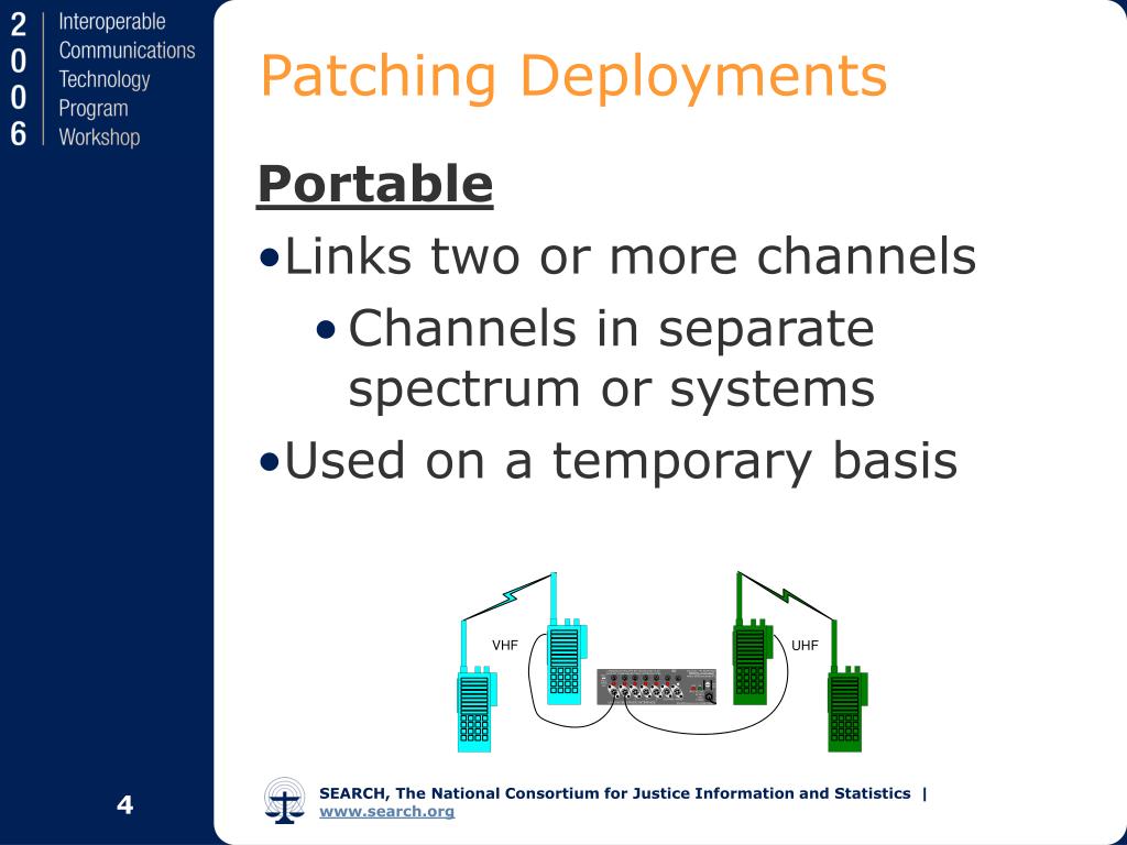 Patching Deployments Portable • Links two or more channels • Channels in separate spectrum or systems • Used on a temporary basis