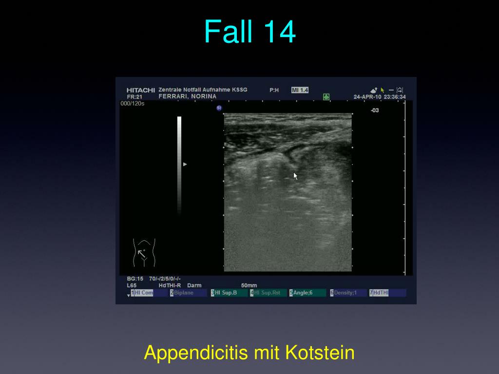 Appendicitis • Merkmale • ausgehendvomCoecum • freiendend • > 6 mm Durchmesser • meistechoarmeUmgebung • rund (nicht oval) • nichtkomprimierbar