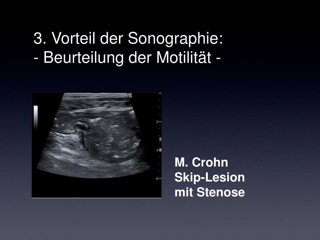 3. Vorteil der Sonographie: - Beurteilung der Motilität - M. Crohn Skip-Lesion mit Stenose