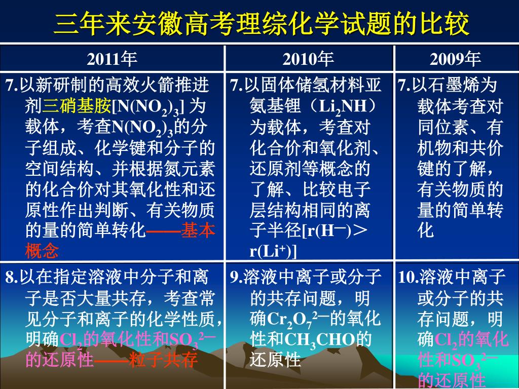 (一) 三年高考 安徽理综化学卷综评 命题专家很用心
