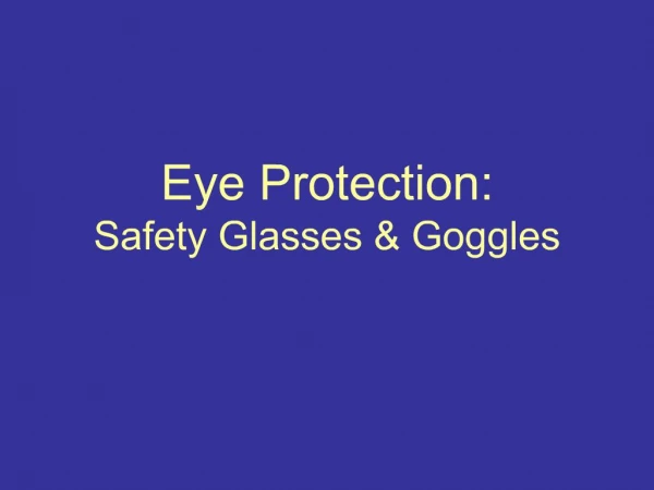 Three different types of eye protection include Goggles, Glasses, or Spoggles.