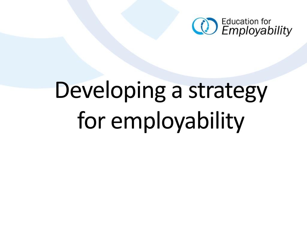 A strategy for employability • What understanding, skills and qualities do we want our students to have? • What experiences should they have? Where and when will they have them? • Who will be involved in planning, delivery and evaluation? Who are our partners and what can they offer? • How will we assess students’ employability learning? How will we evaluate our strategy?