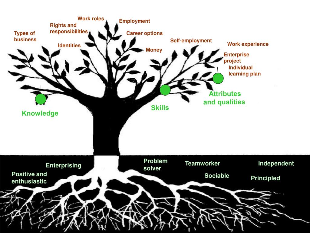 Work roles Employment Rights and responsibilities Types of business Career options Money Self-employment Work experience Identities Enterprise project Individual learning plan Attributes and qualities Skills Knowledge Problem solver Teamworker Independent Enterprising Positive and enthusiastic Sociable Principled