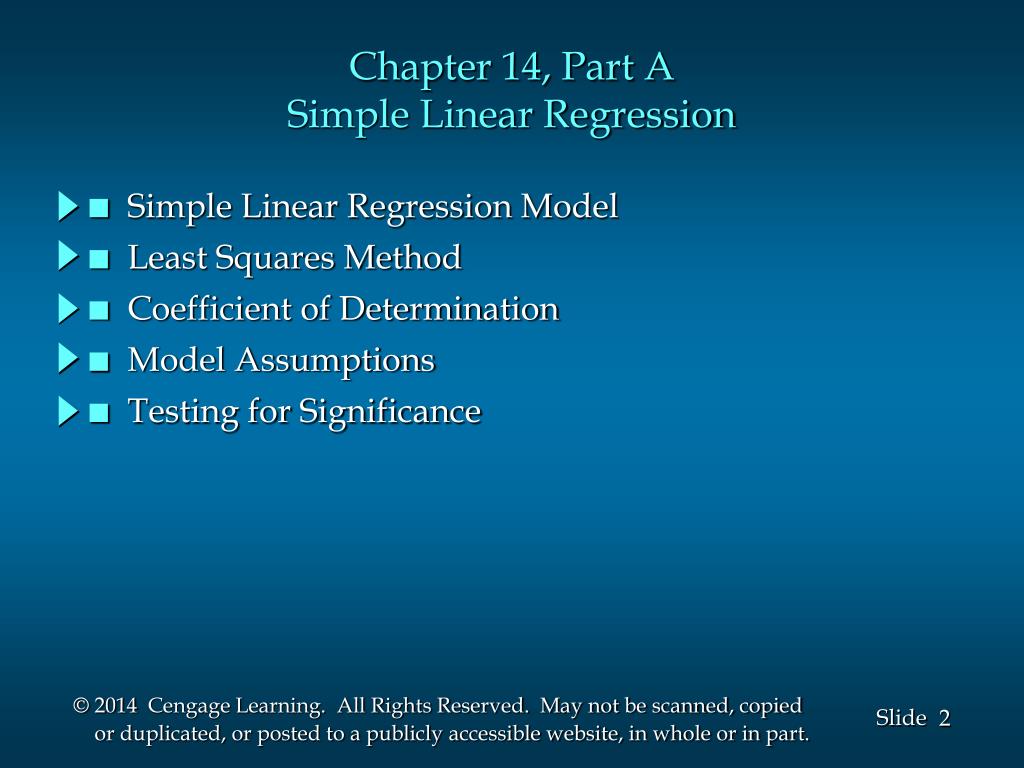 SLIDES . BY. . . . . . . . . . . . John Loucks St . Edward’s University. Chapter 14, Part A Simple Linear Regression. Simple Linear Regression Model. Least Squares Method. Coefficient of Determination. Model Assumptions. Testing for Significance. Simple Linear Regression.
