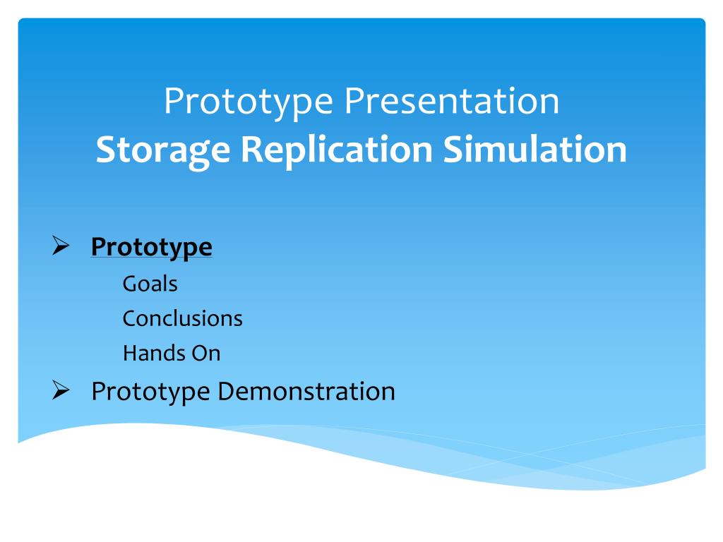 Prototype PresentationStorage Replication Simulation Prototype Goals Conclusions Hands On Prototype Demonstration