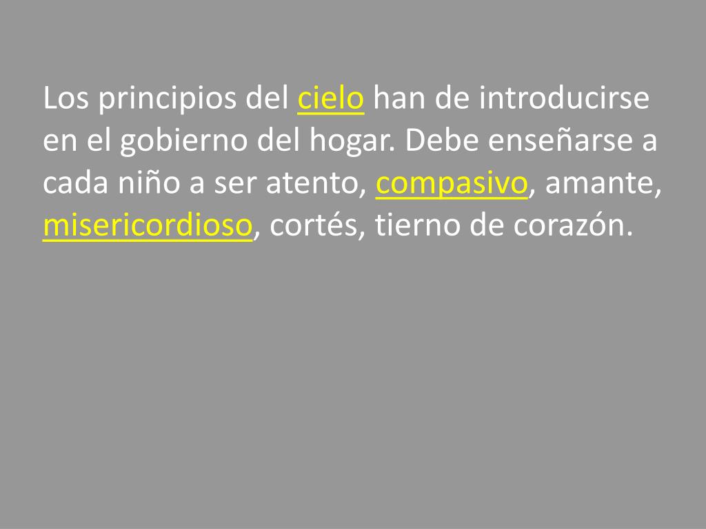 Los principios del cielo han de introducirse en el gobierno del hogar. Debe enseñarse a cada niño a ser atento, compasivo, amante, misericordioso, cortés, tierno de corazón.