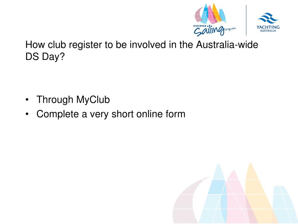 How club register to be involved in the Australia-wide DS Day? • Through MyClub • Complete a very short online form