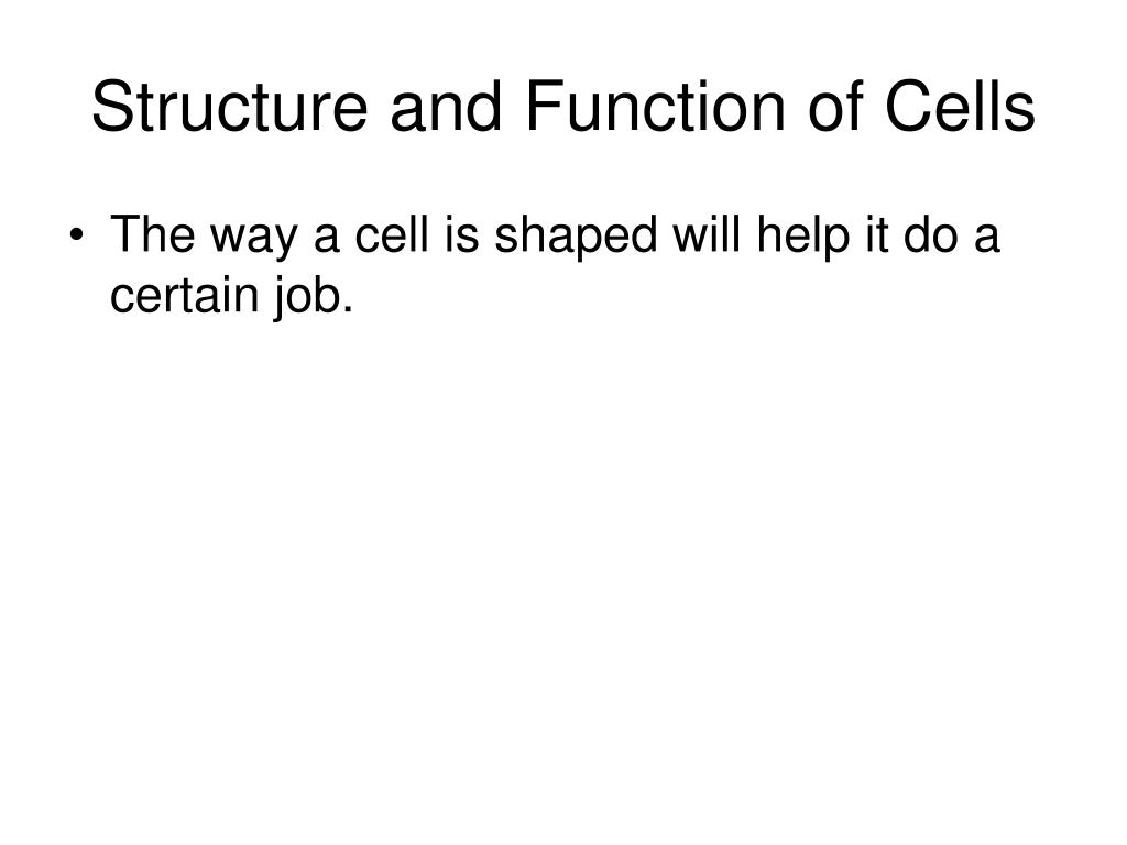 Structure and Function of Cells • The way a cell is shaped will help it do a certain job.