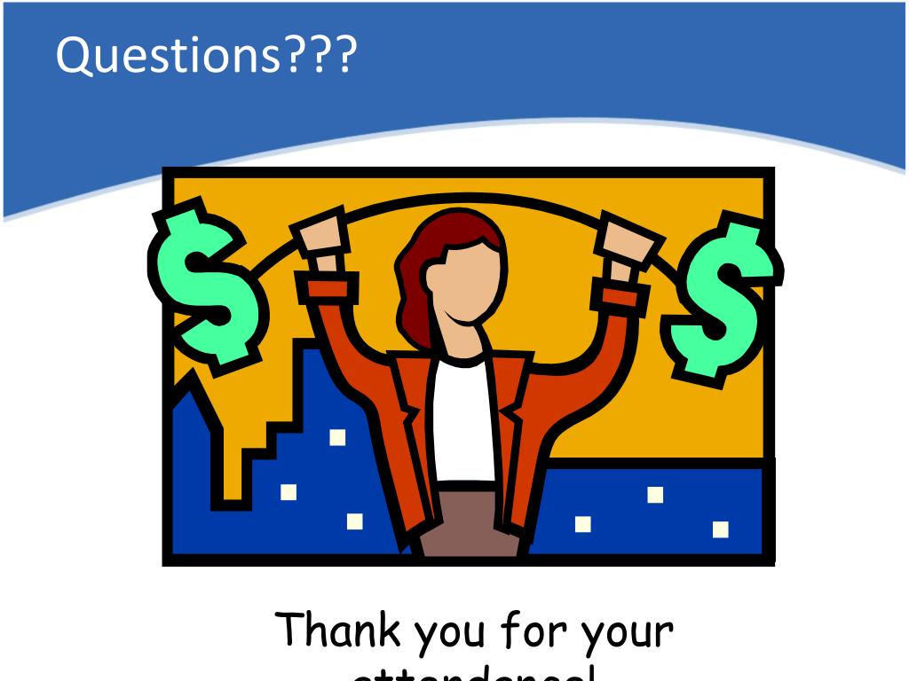 Questions??? Thank you for your attendance!