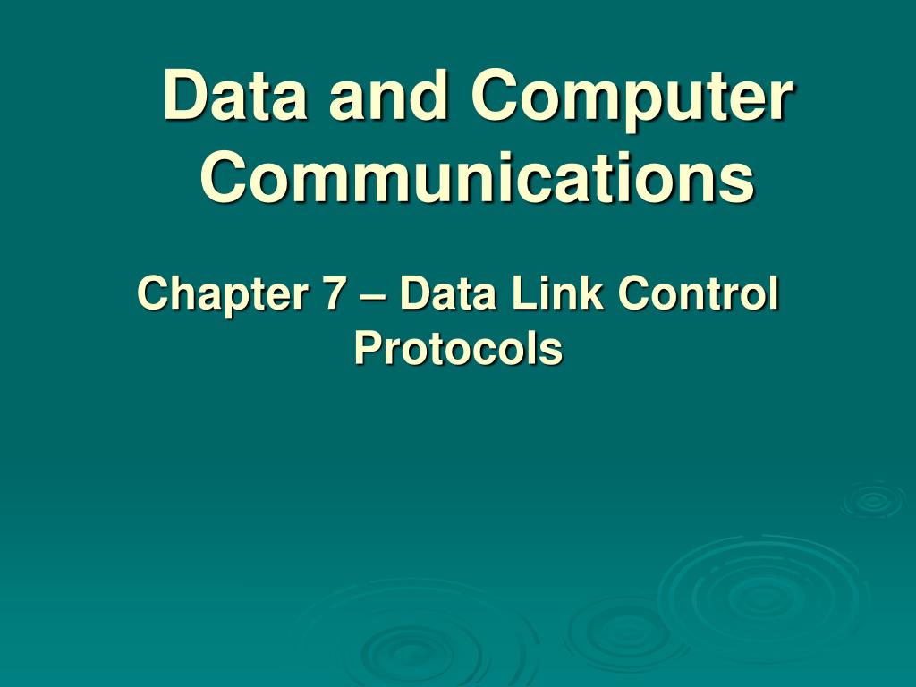 Data and Computer Communications. Chapter 7 – Data Link Control Protocols. Data Link Control Protocols. need layer of logic above Physical to manage exchange of data over a link frame synchronization flow control error control addressing control and data link management.