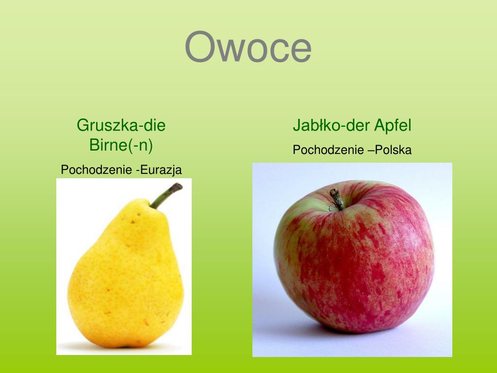 Owoce Gruszka-die Birne(-n) Pochodzenie -Eurazja Jabłko-der Apfel Pochodzenie –Polska