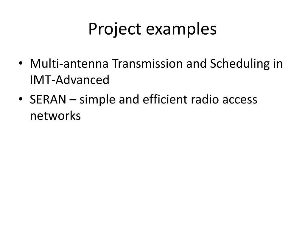 Project examples • Multi-antenna Transmission and Scheduling in IMT-Advanced • SERAN – simple and efficient radio access networks