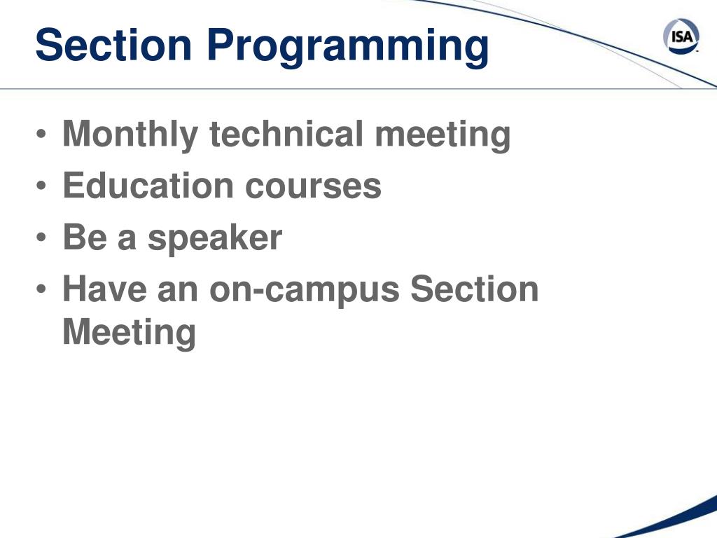 Opportunities for Professional Development • ISANetwork - www.isa.org • Networking • Technical training • Section programming - new technologies • Leadership training