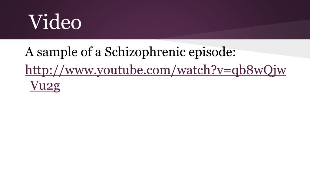 Video A sample of a Schizophrenic episode: http://www.youtube.com/watch?v=qb8wQjwVu2g