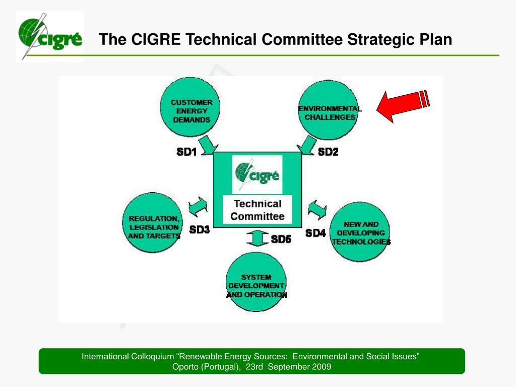 The CIGRE Technical Committee Strategic Plan (2) • STRATEGIC DIRECTION 2 : ENVIRONMENTAL CHALLENGES • Envisage solutions to address the environmental concerns faced by the electrical power sector • Envisage solutions to address the public acceptability issues faced by the electrical power sector • Record the lessons learnt and solutions adopted worldwide • Study system efficiency solutions