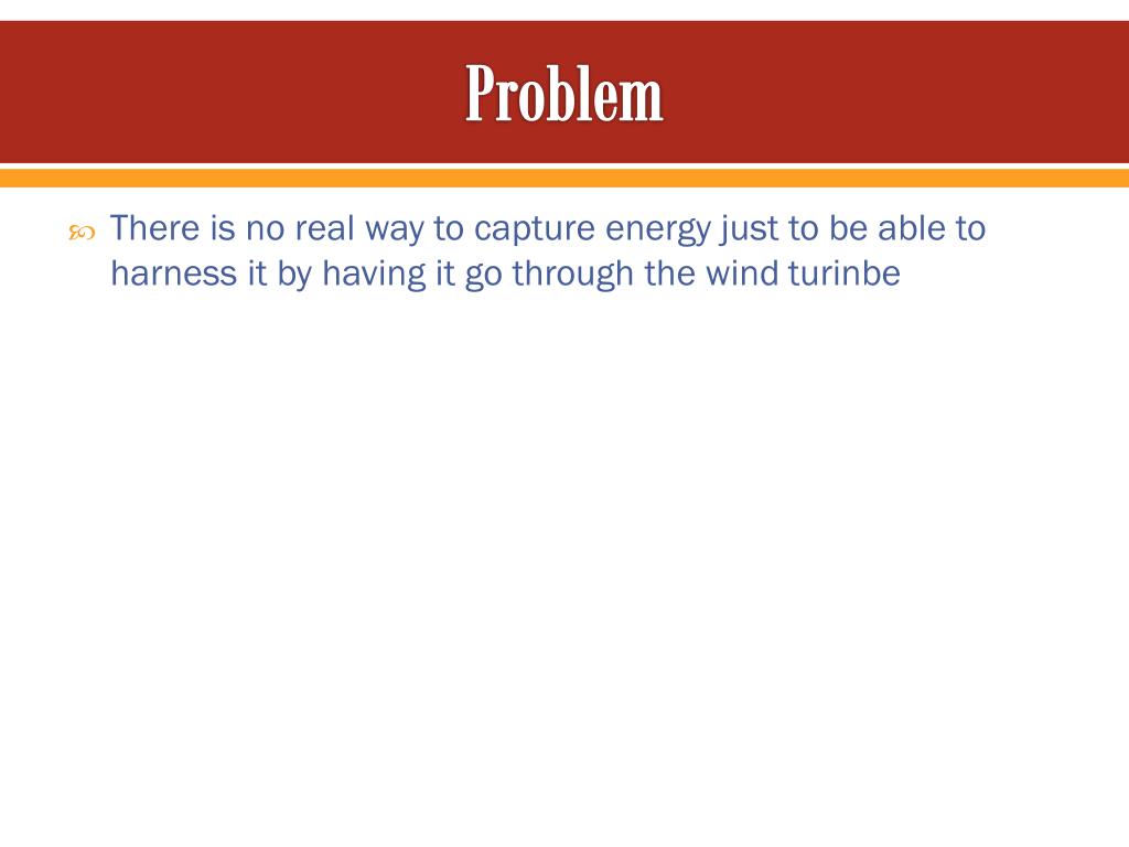 Problem • There is no real way to capture energy just to be able to harness it by having it go through the wind turinbe