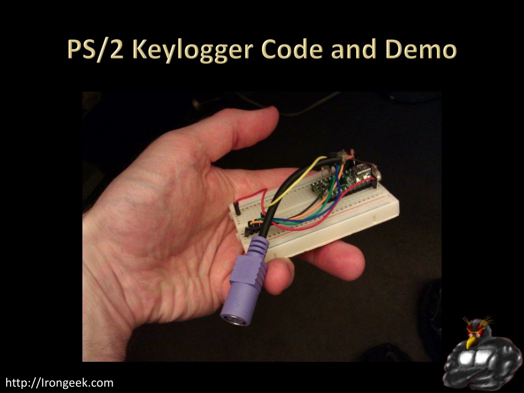 Libraries • PHUKD Libraryhttp://www.irongeek.com/i.php?page=security/programmable-hid-usb-keystroke-dongle#Programming_examples_and_my_PHUKD_library • Teensy PS/2 Library (I have my own mod of this which comes with the PS/2 Key Logger source code)http://www.pjrc.com/teensy/td_libs_PS2Keyboard.html • SDFat16Lib (I used the Wrapper that comes with Arduino)http://code.google.com/p/sdfatlib/