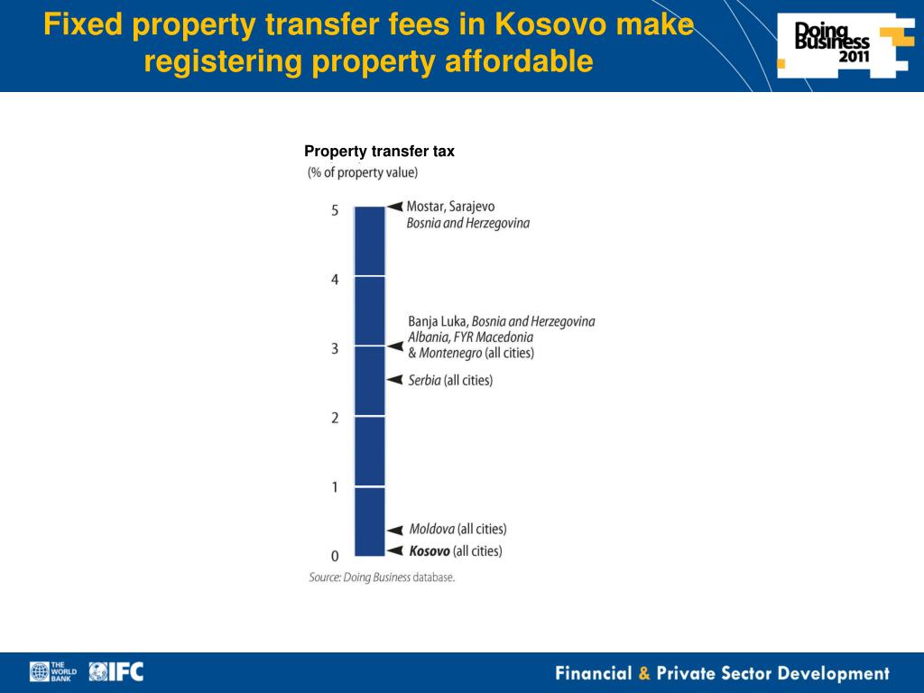 Fixed property transfer fees in Kosovo make registering property affordable Property transfer tax