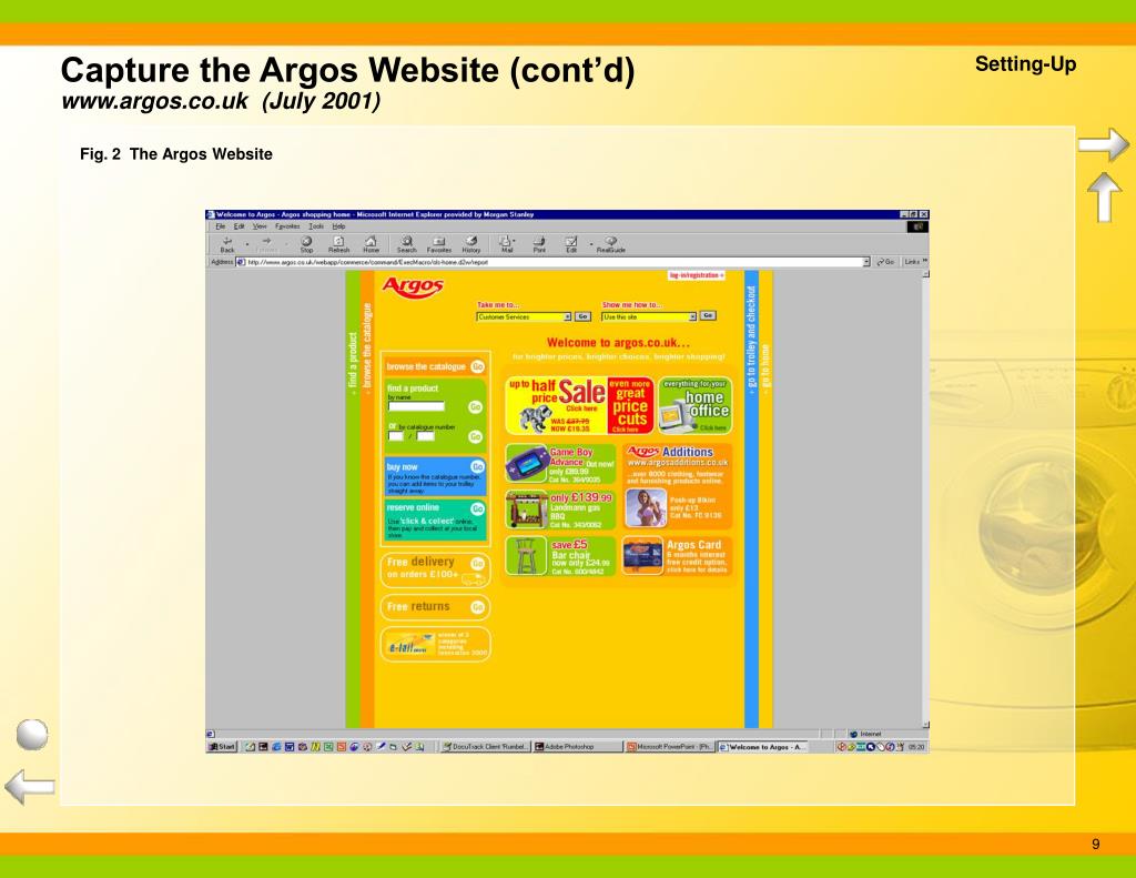 Capture the Argos Website (cont’d) Setting-Up www.argos.co.uk (July 2001) Fig. 2 The Argos Website
