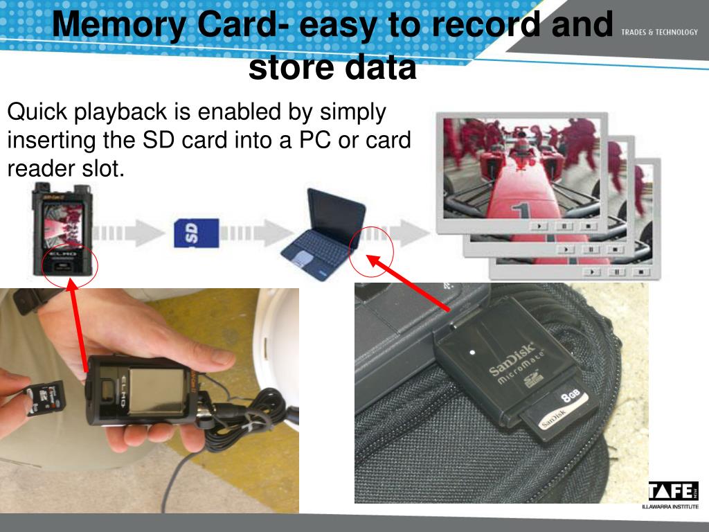 Memory Card- easy to record and store data Quick playback is enabled by simply inserting the SD card into a PC or card reader slot.