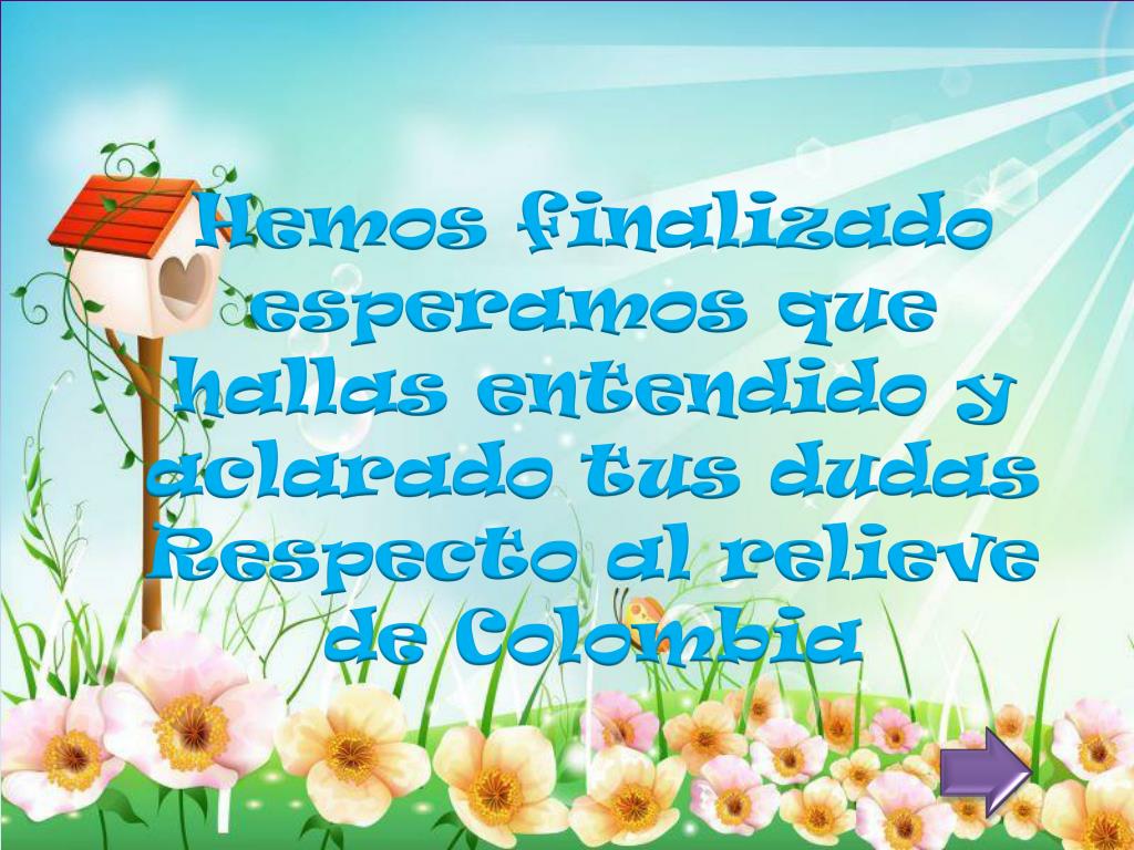 Hemos finalizado esperamos que hallas entendido y aclarado tus dudas Respecto al relieve de Colombia