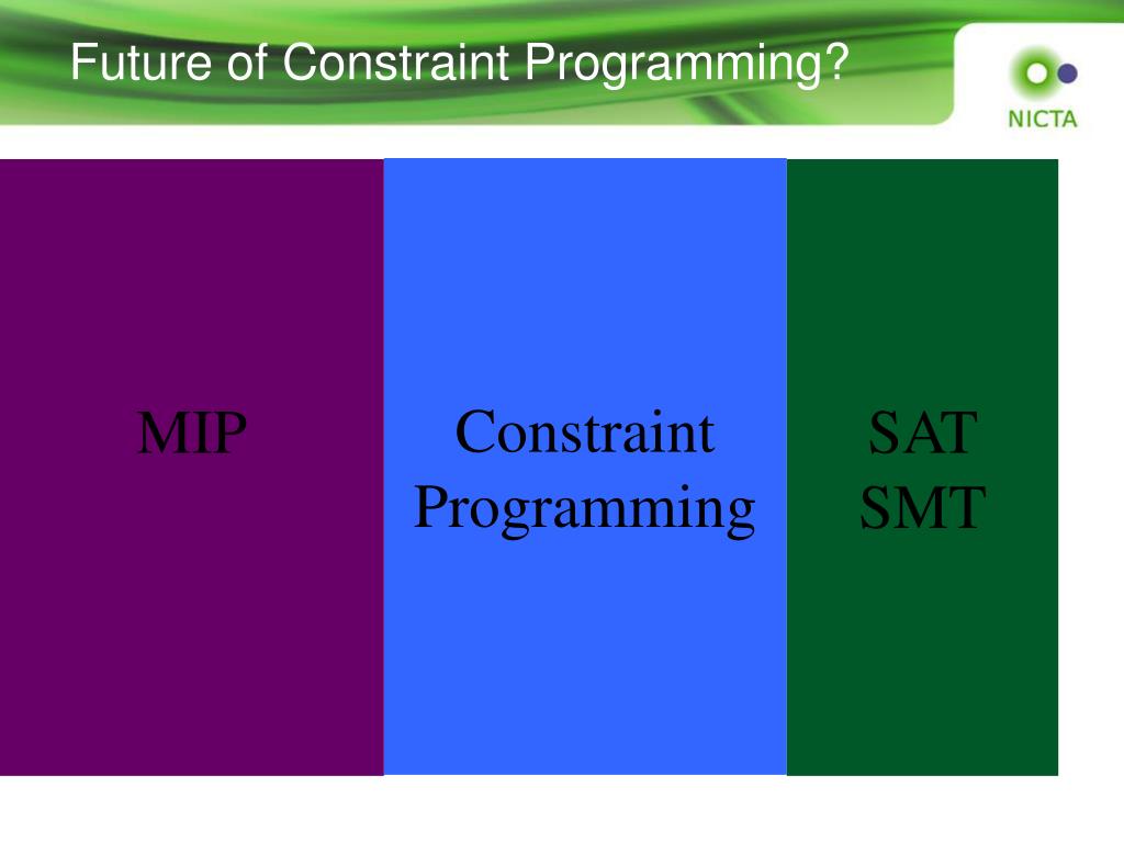 Future of Constraint Programming? Constraint Programming MIP SAT SMT