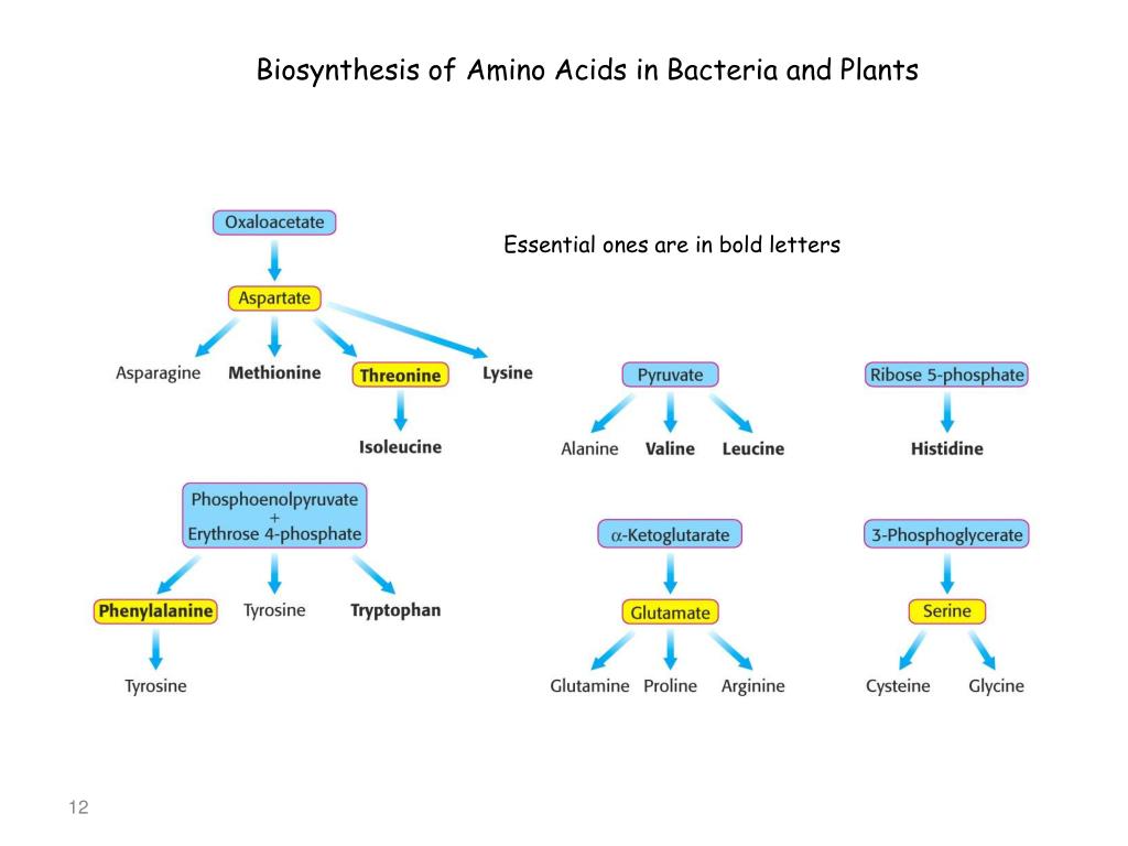 Biosynthesis of Amino Acids in Bacteria and Plants Essential ones are in bold letters