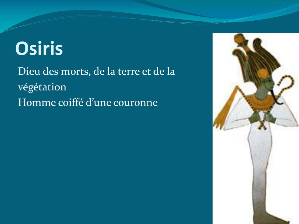 Osiris Dieu des morts, de la terre et de la végétation Homme coiffé d’une couronne