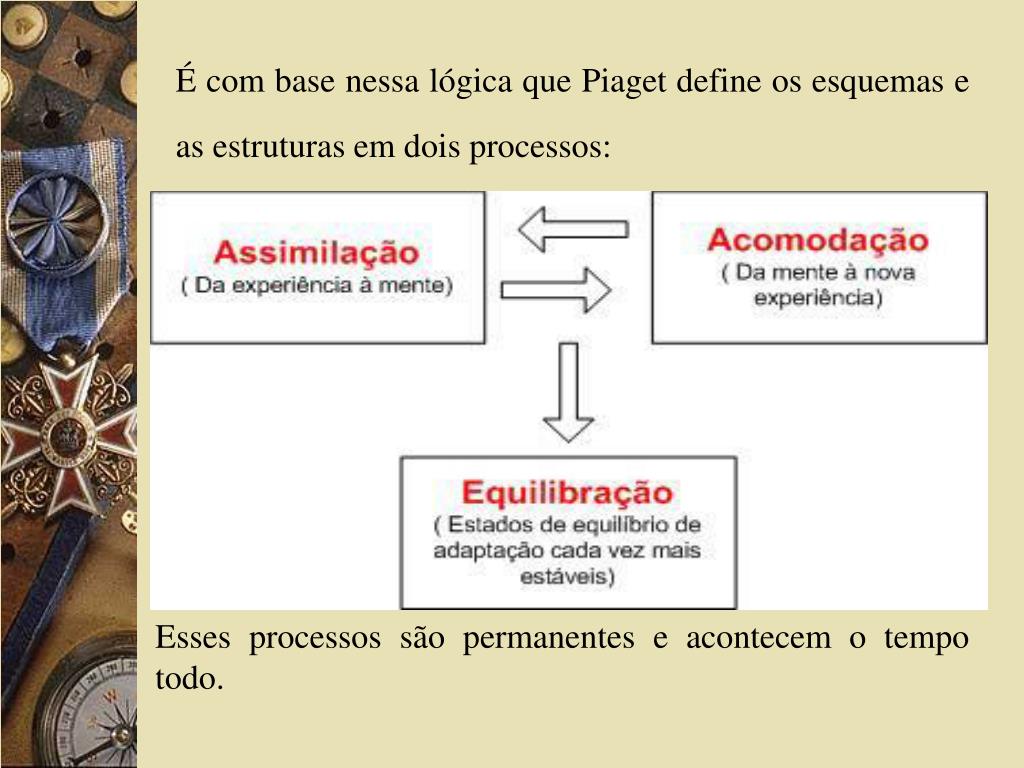 É com base nessa lógica que Piaget define os esquemas e as estruturas em dois processos: Esses processos são permanentes e acontecem o tempo todo.