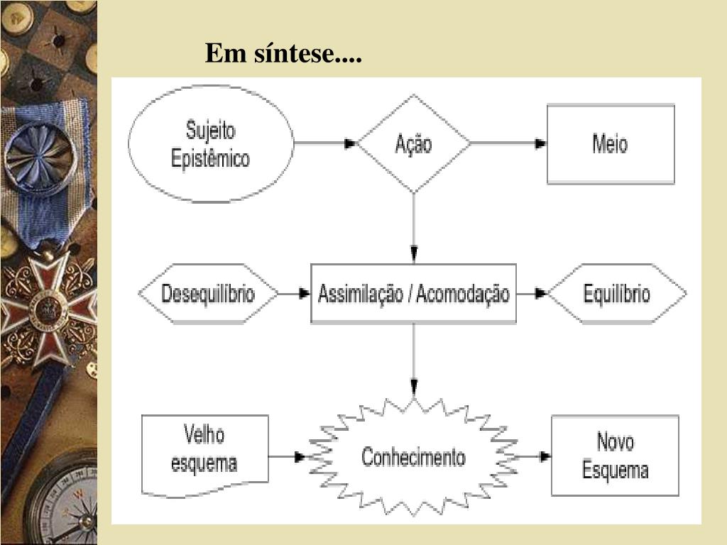 Em síntese: Para Piaget, o ser humano assimila as informações que recebe do exterior, mas uma vez que já tem uma estrutura mental que não está "vazia", precisa de adaptar esses dados à estrutura mental já existente. Uma vez que os dados são adaptados a si, dá-se a acomodação. Para Piaget nenhum conhecimento nos chega do exterior sem que sofra nenhuma alteração pela nossa parte, ou seja, tudo o que aprendemos é influenciado por aquilo que já tínhamos aprendido.