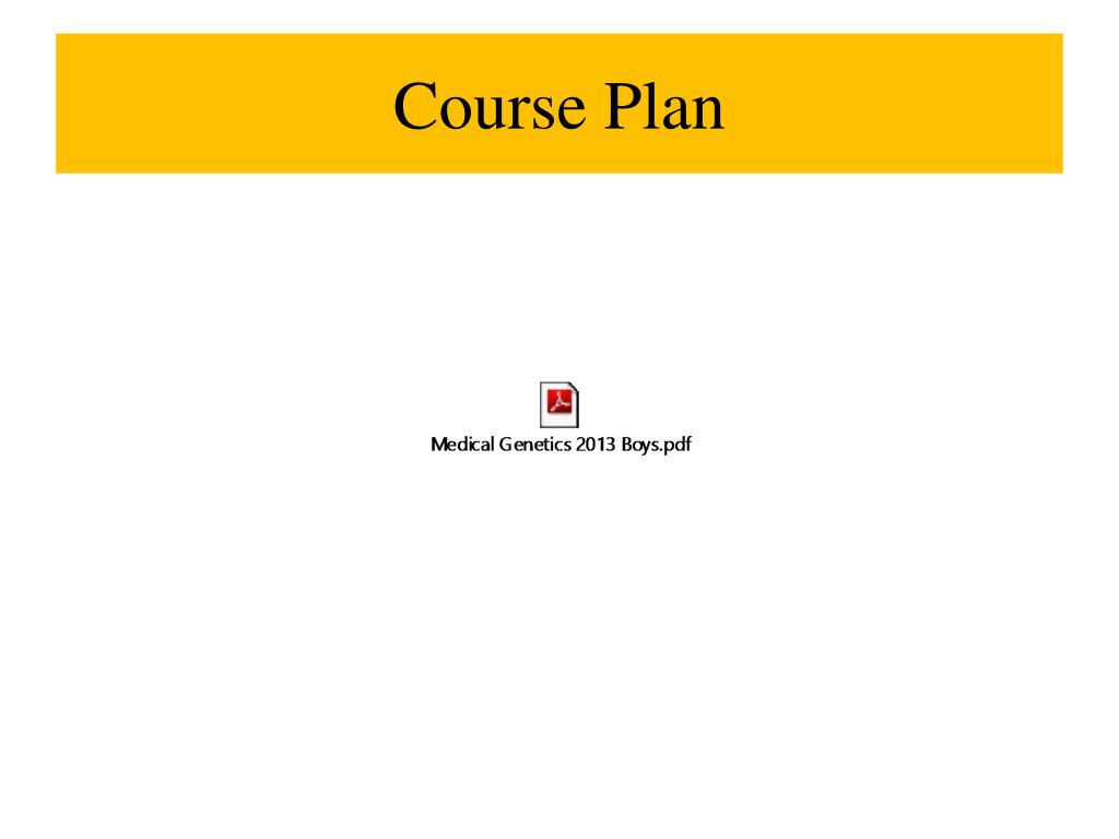 Genetic Course By the end of these sessions, the students should be able to demonstrate the ability to discuss the normal and genetic mechanisms that underlie several normal and disease processes. • The Aim of this course is to provide the student with a sound understanding of normal and disease processes at the genetic level. • This course will be comprised of different modalities of expressions such as Lectures, Seminars , Case base discussions and group activities. • Each session will cover the general features of the normal and disease condition(s), and will focus on current understanding of the biochemical effects of normal conditions as well as biochemical defects (metabolic, structural or genetic) which underlie the disease state. • This course will deals with the Human as well as Medical genetics.