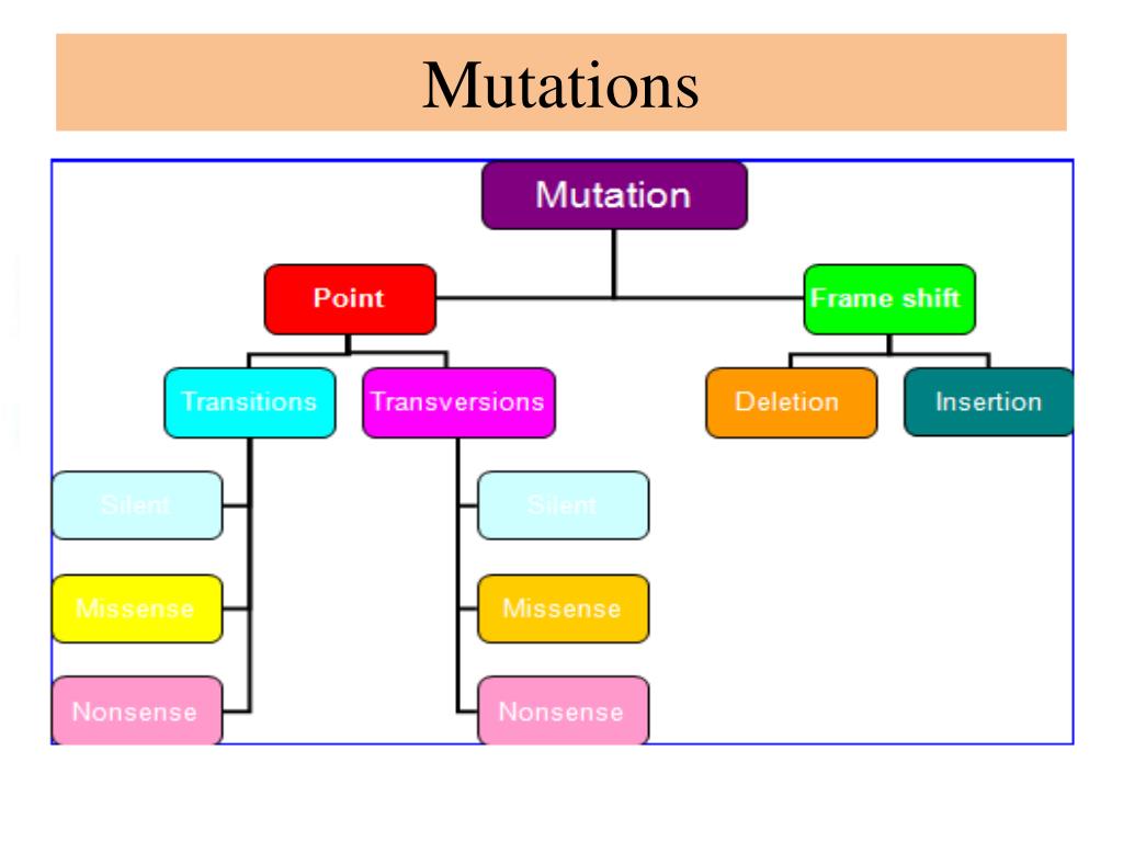 Mutations Definition : replacement or change of a nucleotide base with another, in one or both strands, or addition or deletion of a base pair in a DNA molecule . Hb A β chain Glu6to Hb (S) β chain Val 6