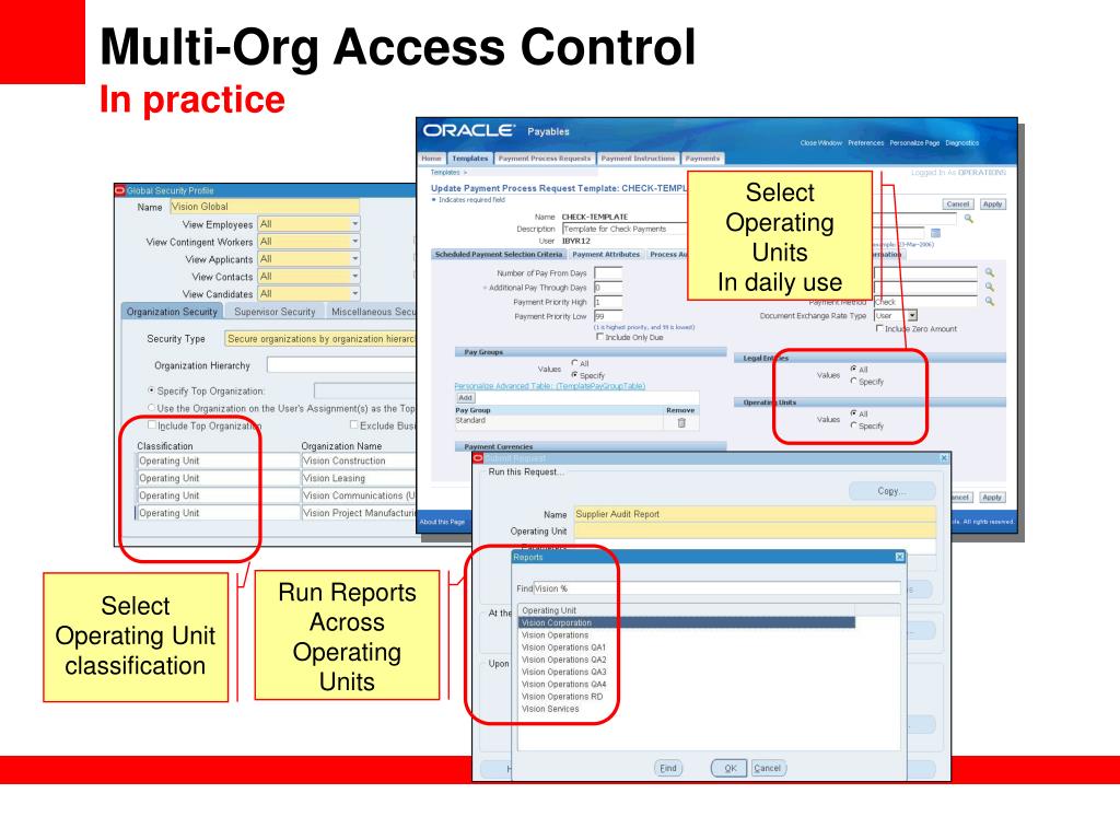 Multi-Org Access ControlIn practice SelectOperating Units In daily use Run ReportsAcrossOperating Units Select Operating Unit classification Classify Organization as operating unit