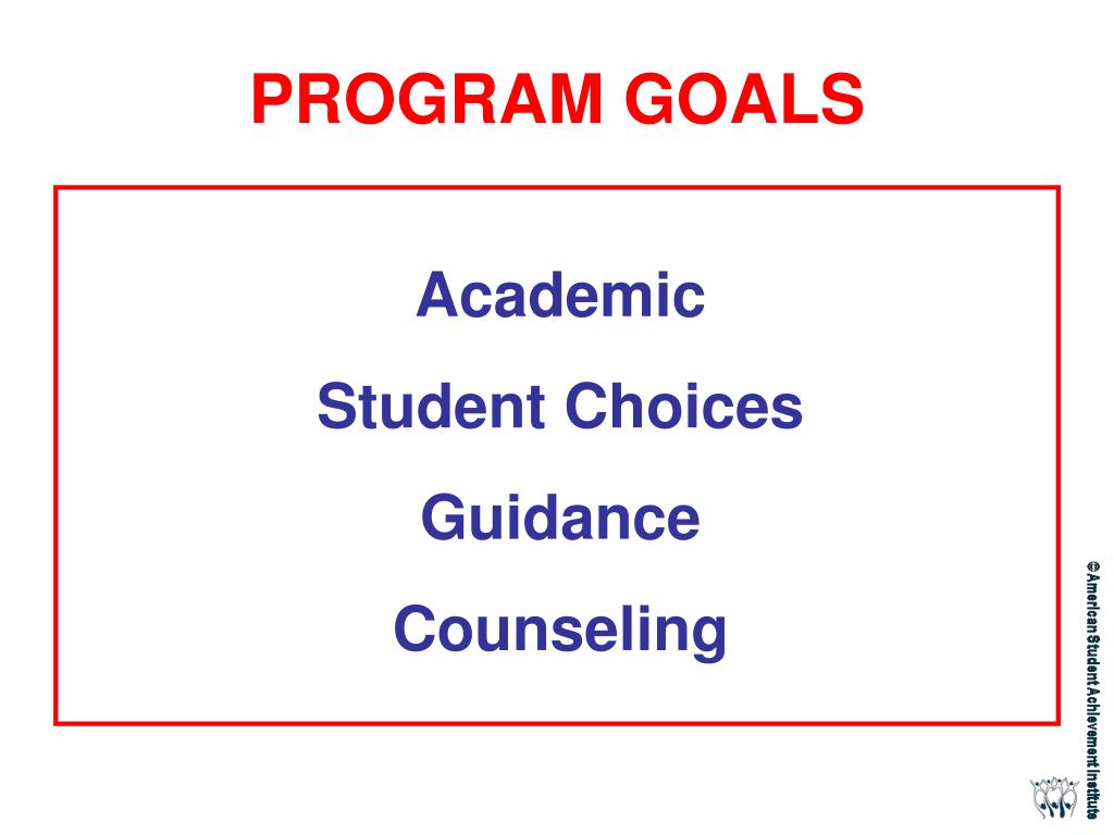 American Student Achievement Institute ASAI Redesigning School Counseling REVIEW SCHOOL COUNSELING PROGRAM GOALS