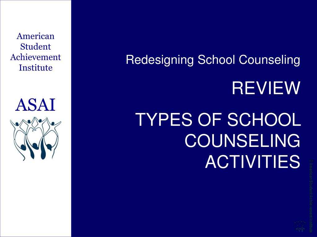 American Student Achievement Institute ASAI Redesigning School Counseling REVIEW TYPES OF SCHOOL COUNSELING ACTIVITIES