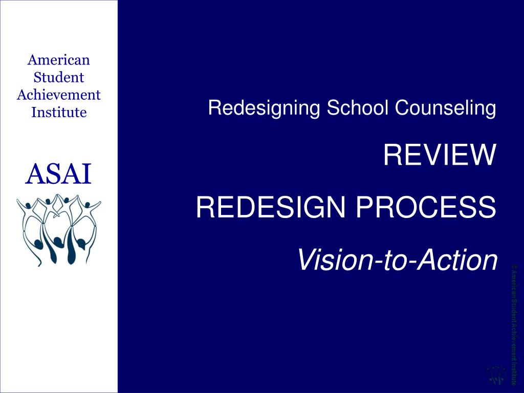 American Student Achievement Institute ASAI Redesigning School Counseling REVIEW REDESIGN PROCESS Vision-to-Action