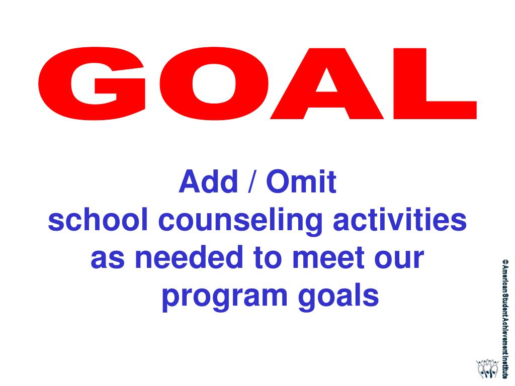 GOAL Add / Omit school counseling activities as needed to meet our program goals