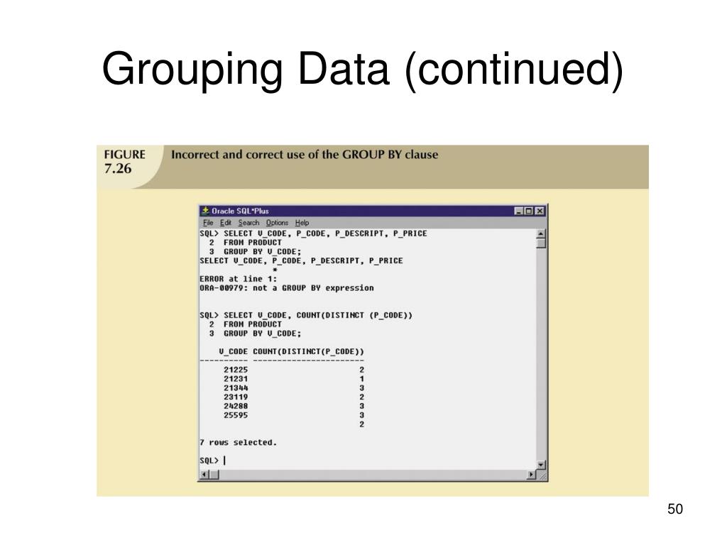 Creating Table Structures (continued) • Primary key attributes contain both a NOT NULL and a UNIQUE specification • RDBMS will automatically enforce referential integrity for foreign keys • Command sequence ends with semicolon