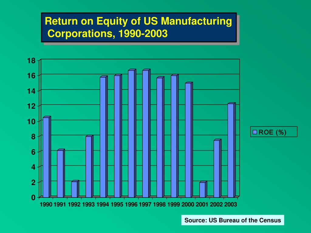 Return on Equity of US Manufacturing Corporations, 1990-2003 Source: US Bureau of the Census